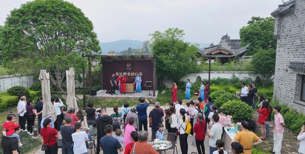 为迎接“五一”小长假,“五一”期间,“百家大院”特别推出多项文化主题活动,进一步丰富游客的游览体验。古代砖雕木雕馆和朱家临展厅首次对外开放,展出珍贵的徽州清明木雕与汉唐画像砖,让游客近距离感受古代工匠的精湛技艺。此外,国风舞蹈、奇幻魔术和川剧变脸等表演轮番上演,也吸引众多游客驻足观看。现场还设有市级非物质文化遗产“十八子糕”制作体验活动,让游客在互动中感受客家饮食文化魅力。